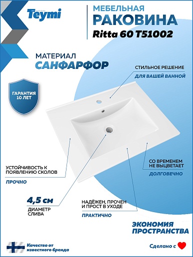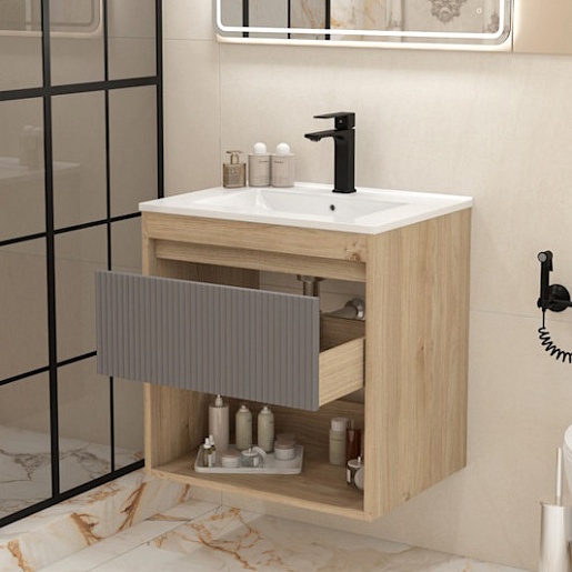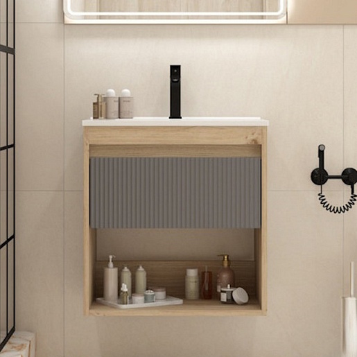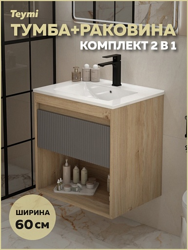 Подвесная тумба с раковиной Teymi Vitra 60 Волна дуб/графит - арт. T60402 / T60419 / T51002.