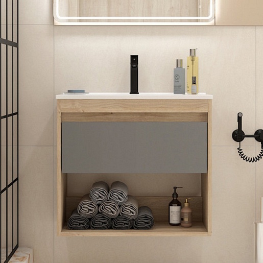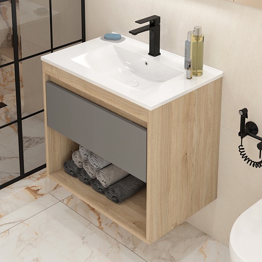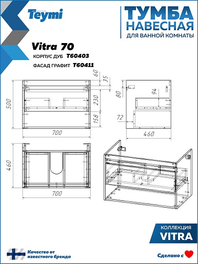 Подвесная тумба с раковиной Teymi Vitra 70 дуб/графит - арт. T60403 / T60411 / T51004.