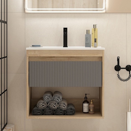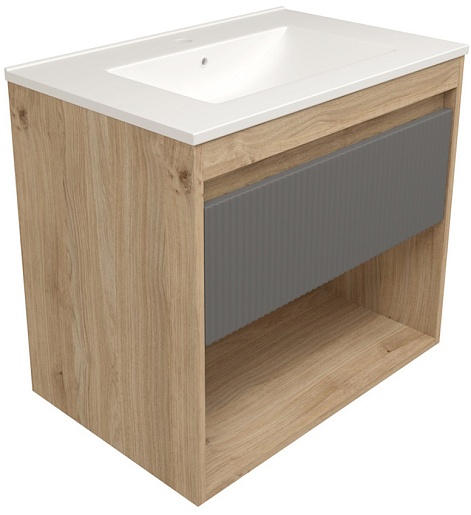Подвесная тумба с раковиной Teymi Vitra 70 Волна дуб/графит - арт. T60403 / T60421 / T51004.