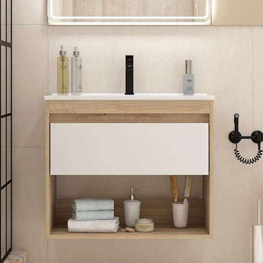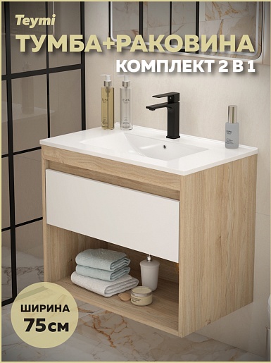 Подвесная тумба с раковиной Teymi Vitra 75 дуб/белый - арт. T60404 / T60412 / T51005.