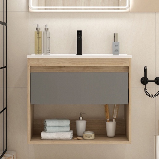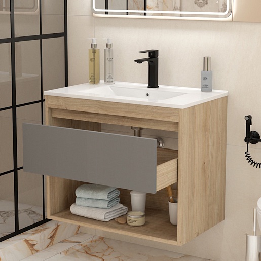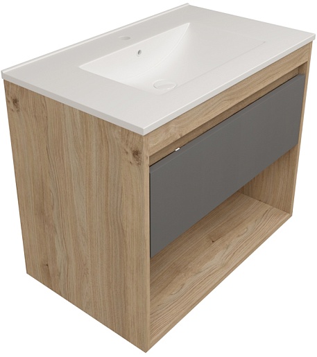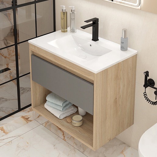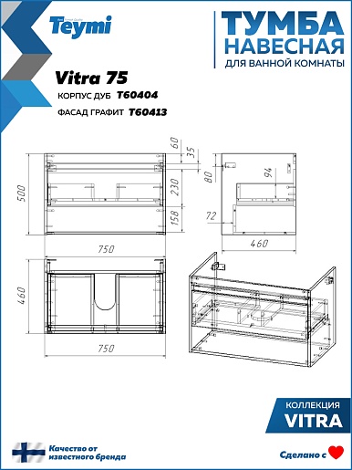 Подвесная тумба с раковиной Teymi Vitra 75 дуб/графит - арт. T60404 / T60413 / T51005.
