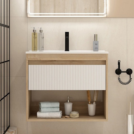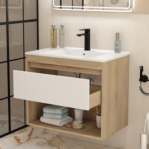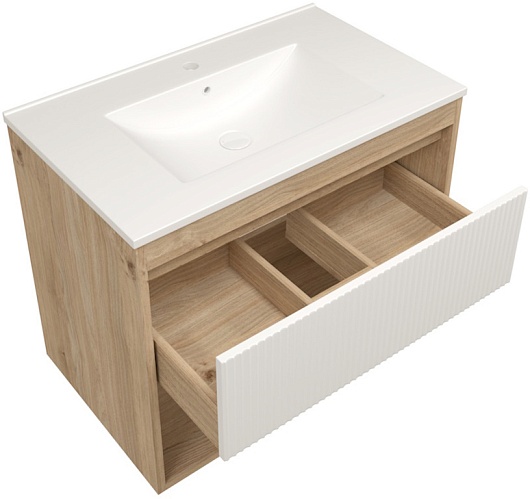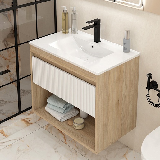 Подвесная тумба с раковиной Teymi Vitra 75 Волна дуб/белый - арт. T60404 / T60422 / T51005.