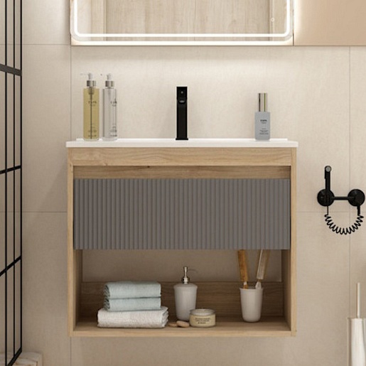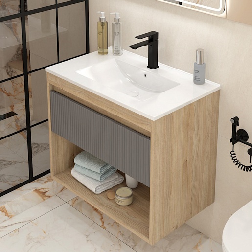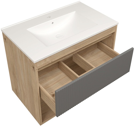 Подвесная тумба с раковиной Teymi Vitra 75 Волна дуб/графит - арт. T60404 / T60423 / T51005.