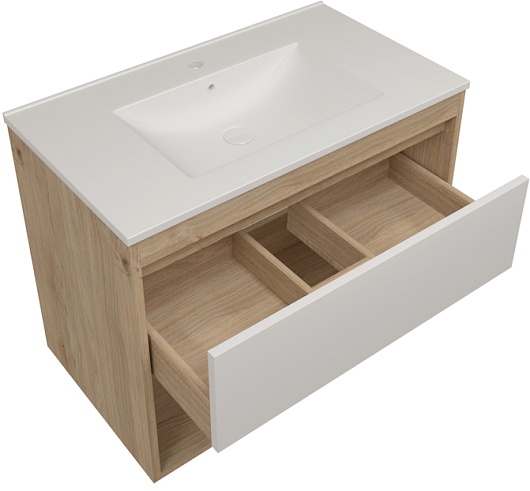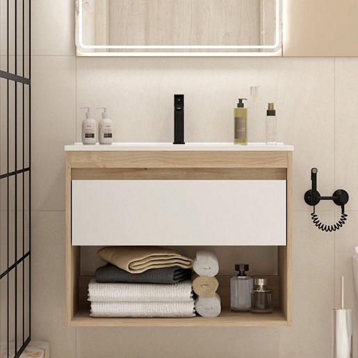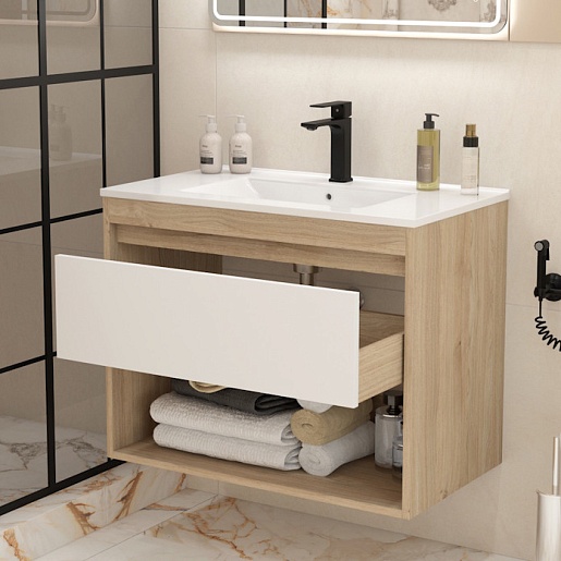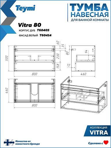 Подвесная тумба с раковиной Teymi Vitra 80 дуб/белый - арт. T60405 / T60414 / T51001.