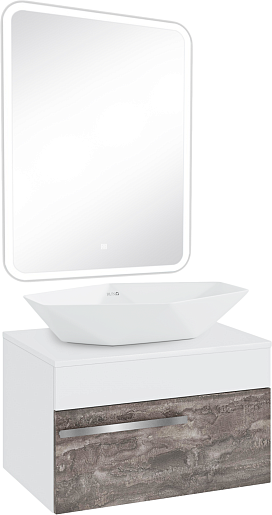 Тумба под раковину Вудлайн 65 железный камень/белая