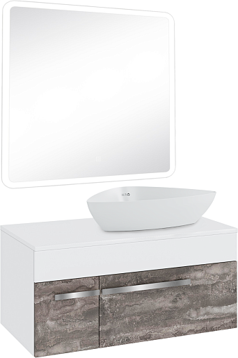 Тумба под раковину Вудлайн 85 железный камень/белая