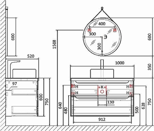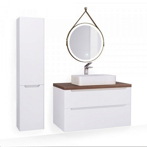 Jorno Тумба с раковиной Wood 100 белая столешница тёмная