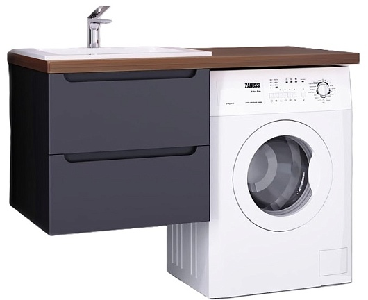 Jorno Тумба с раковиной Wood 120 серая под стиральную машину столешница тёмная