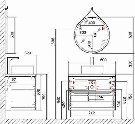- Механизм доводчика обеспечивает плавное закрывание фасадов.