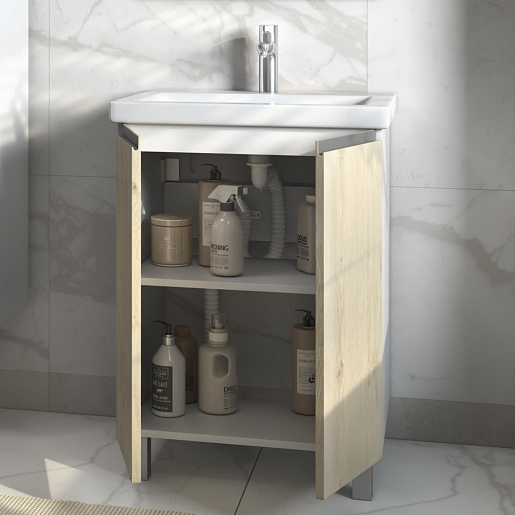 В комплекте: тумба, раковина, ножка (2 шт.), крепеж.