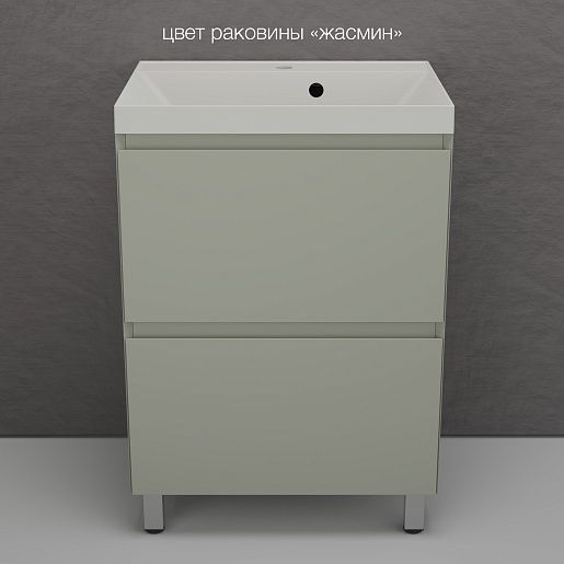 Style Line Тумба с кварцевой раковиной жасмин Манхэттен 60 Plus эмаль олива матовая