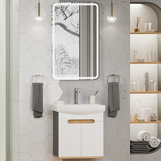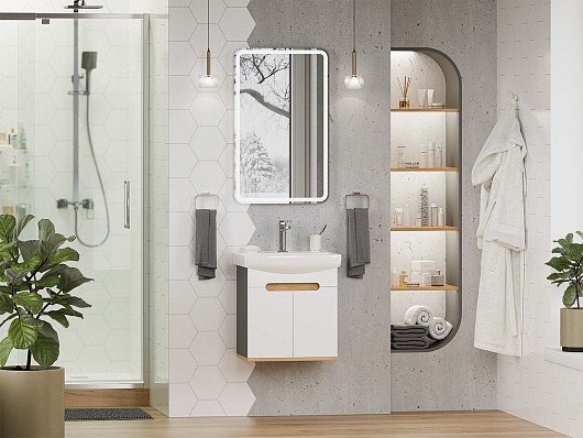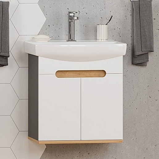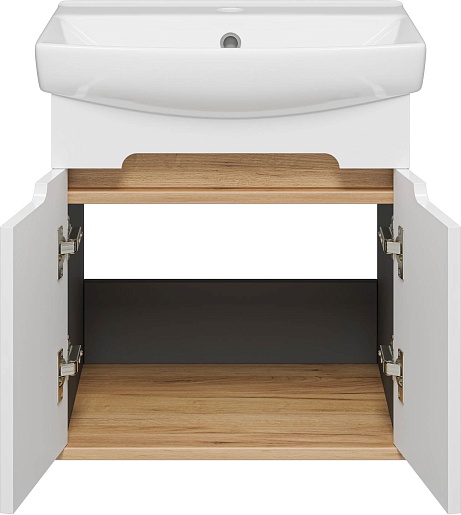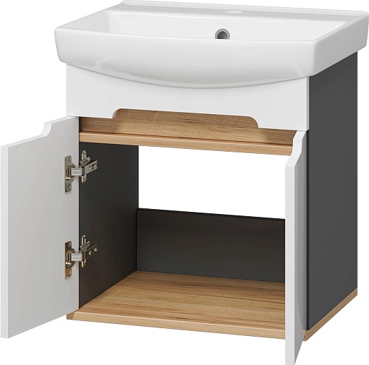 Тумба под раковину Сканди 50 подвесная белая/дуб крафт золотой/антрацит