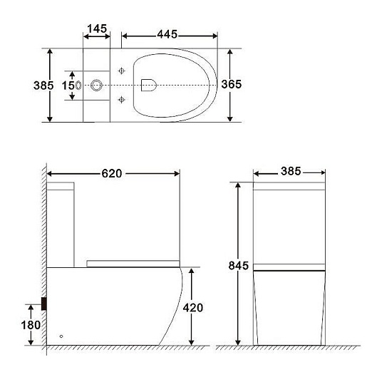 Габариты чаши унитаза (ШхВхД): 365х420х620 мм.
