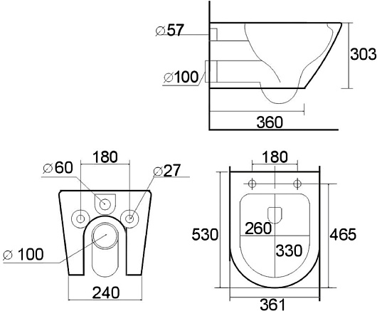 Esbano Унитаз Color Clavel-53T подвесной безободковый белый