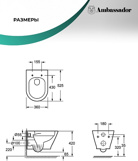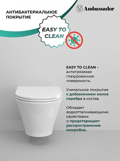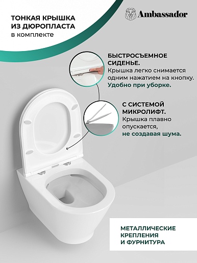 Ambassador Унитаз Elysium подвесной безободковый белый с сиденьем микролифт