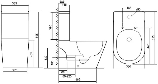 - Размер (ШxВxГ): 385 x 805 x 615 мм.
