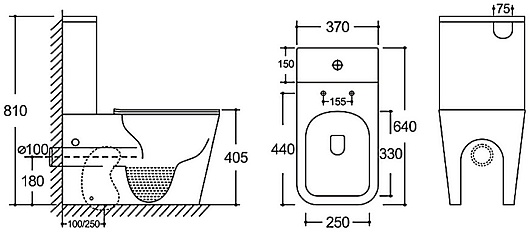- Размер (ШxВxГ): 370 x 810 x 640 мм.