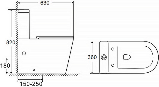 - Размер (ШxВxГ): 360 x 820 x 630 мм.