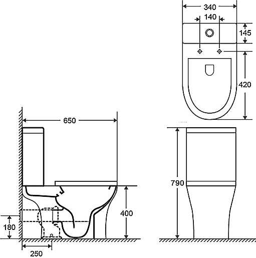- Размер (ШxВxГ): 340 x 790 x 650 мм.