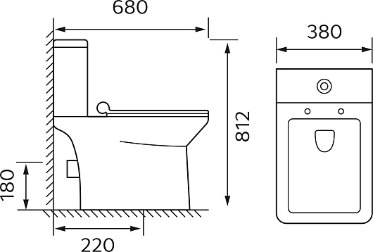 - Размер (ШxВxГ): 380 x 812 x 680 мм.
