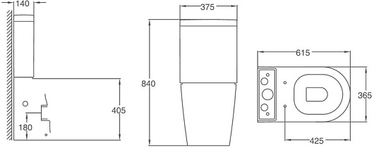 В комплекте: чаша унитаза, бачок, крышка-сиденье, механизм смыва, крепления.
