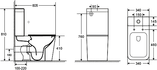 - Размер (ШxВxГ): 340 x 810 x 605 мм.