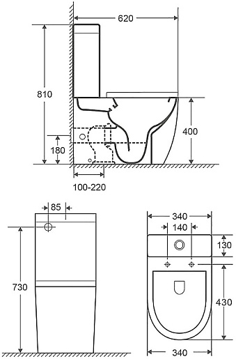 - Размер (ШxВxГ): 340 x 810 x 620 мм.