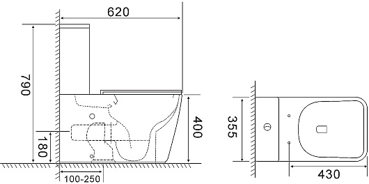 - Размер (ШxВxГ): 355 x 790 x 620 мм.