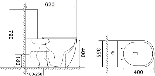 - Размер (ШxВxГ): 355 x 790 x 620 мм.