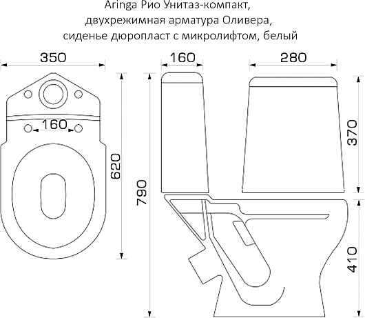 Aringa Унитаз компакт Рио AR01002WH с сиденьем микролифт белый