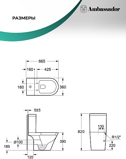 Ambassador Унитаз компакт Ritz белый с сиденьем микролифт