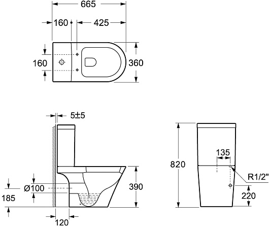 - Размер изделия (ШxВxД): 360x820x665 мм.