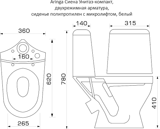 Aringa Унитаз компакт Сиена AR01005WH с сиденьем микролифт белый