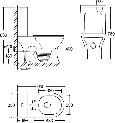 В комплекте: чаша унитаза, бачок, крышка-сиденье, механизм смыва, крепления.