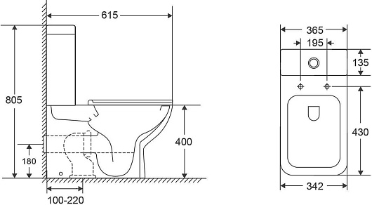 - Размер (ШxВxГ): 366 x 805 x 615 мм.