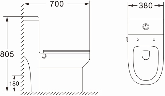 - Размер (ШxВxГ): 380 x 805 x 700 мм.