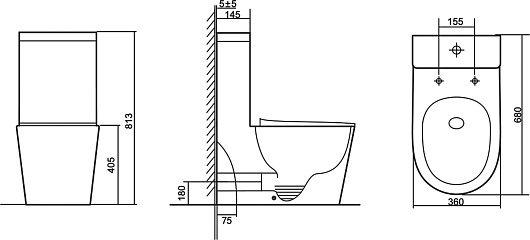 - Размер (ШxВxГ): 360 x 813 x 680 мм.