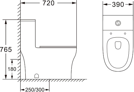 - Размер (ШxВxГ): 390 x 760 x 720 мм.