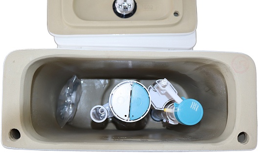 В комплекте: чаша унитаза с бачком, крышка-сиденье, механизм смыва, крепления.
