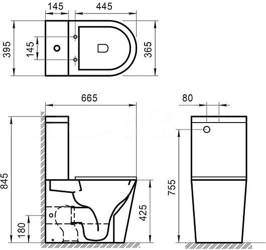 Чаша без внутреннего ободка полностью омывается потоком воды