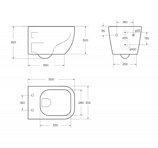 Чаша без внутреннего ободка полностью омывается потоком воды и не имеет недоступных мест для уборки