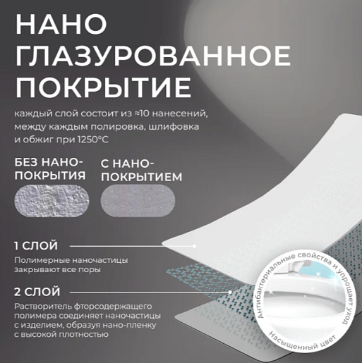 - Особая глазурь для легкой очистки отталкивает известковые отложения и загрязнения.
