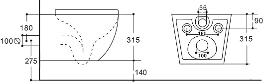 - Подвод воды-определяется системой инсталляции/скрытого бачка.