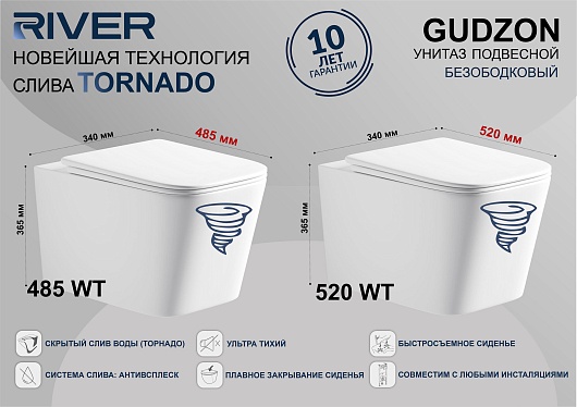 River Унитаз подвесной Gudzon 520 WT безободковый