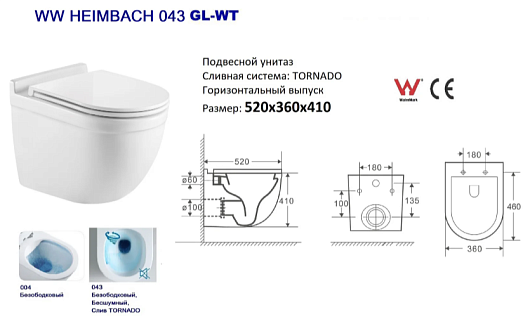 WeltWasser Унитаз подвесной HEIMBACH 043 GL-WT
