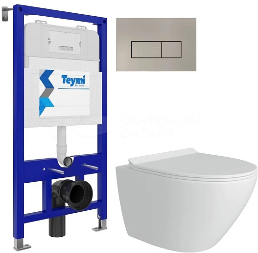 Teymi Унитаз подвесной Lina Pro T40106 с инсталляцией Aina T70011 кнопка Helmi T70204