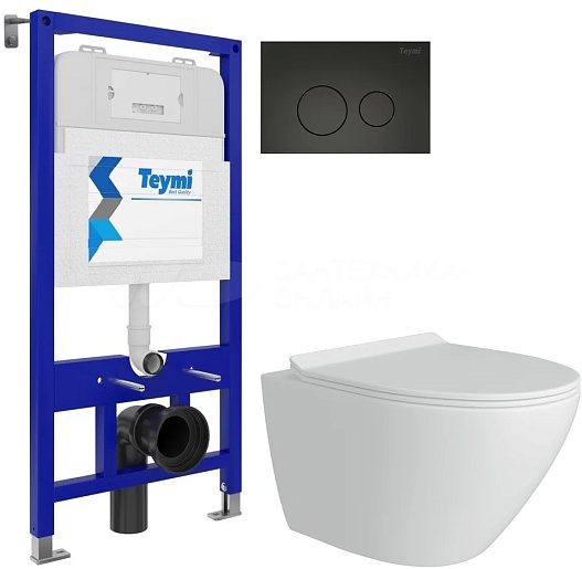 Teymi Унитаз подвесной Lina Pro T40112 с инсталляцией Aina T70011 с кнопкой Lina T70103BM