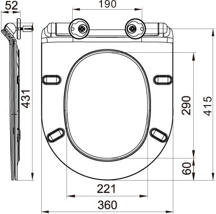Сиденье из дюропласта с плавным опусканием крышки (Микролифт), быстросъемное.