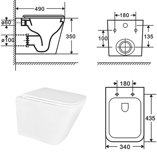В комплекте: чаша унитаза, крышка-сиденье, крепления.