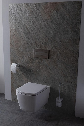- Поверхность чаши имеет антигрязевое покрытие. Унитаз монтируется на стену благодаря инсталляции с выходом в канализацию и системой подачи воды.